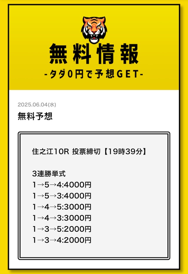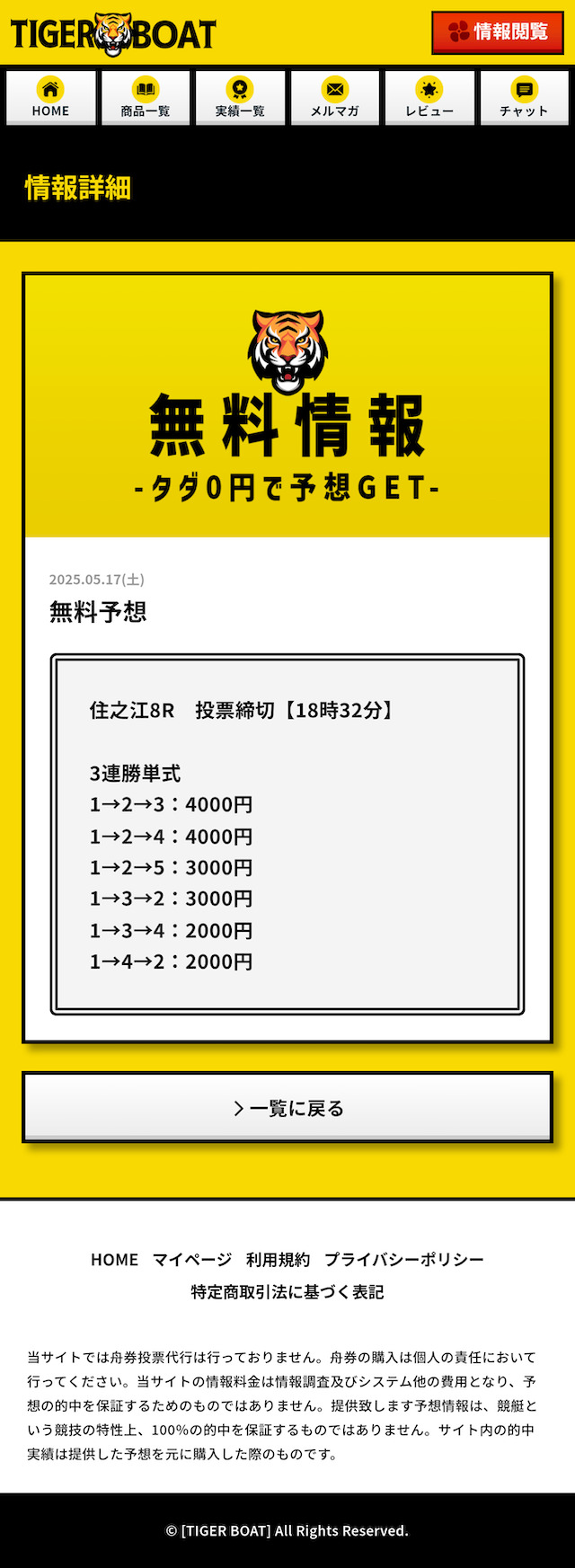 タイガーボートでは他にも多くの有料予想を公開している事が分かっており、競艇マスターズはその他の有料予想を検証。