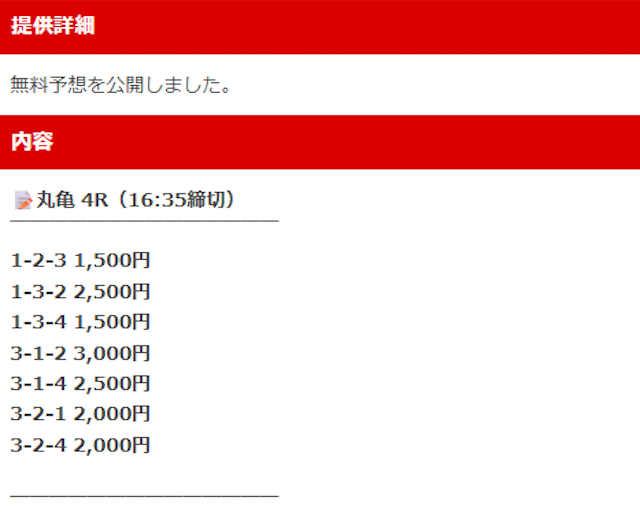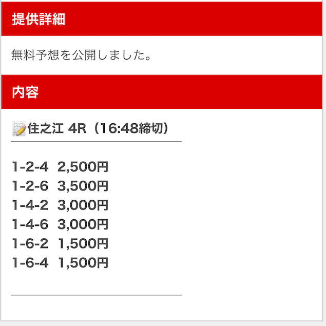 ユーザーが納得して有料予想を購入してくれないと、アルティメットボートは経営難におちいりソッコーで閉鎖まであり得る、かなり提供する予想に自信があるのでしょうか。