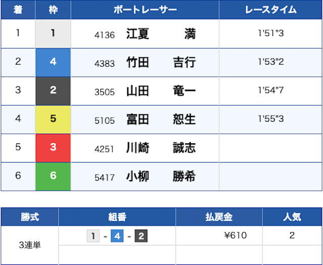 - 11/6 浜名湖3R三連単 6点1−2−4獲得金額41,250円投資金額15,000円16.5倍+26,250円