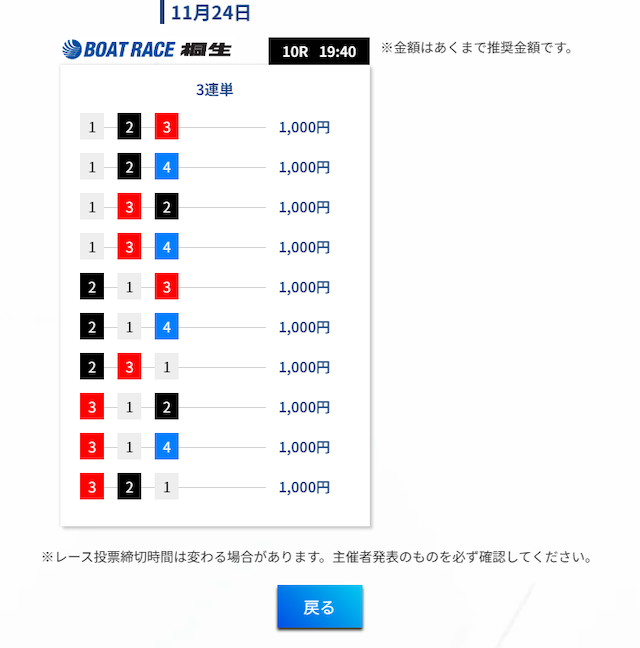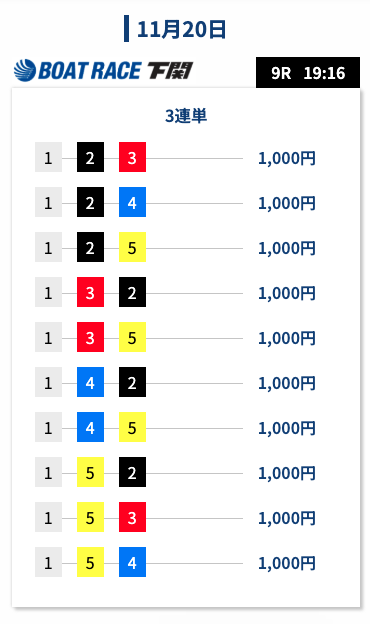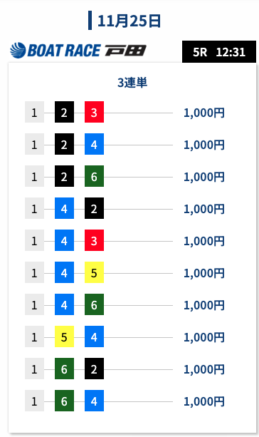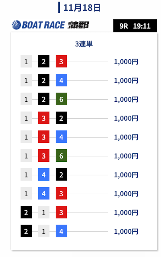 | 2025/11/19 鳴門11R→江戸川9R |