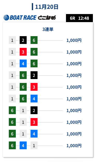 安定して当たるのはいいけど、爆発力が物足りない。もう少し高配当を狙える買い目が欲しいかな。