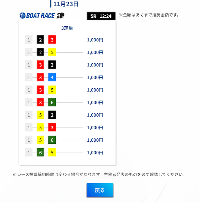 気になるのは、びわこ競艇場の勝率が7割を超える6号艇を買い目から外したこと。