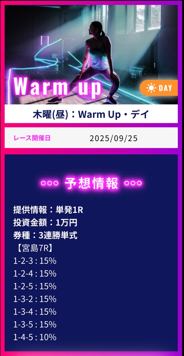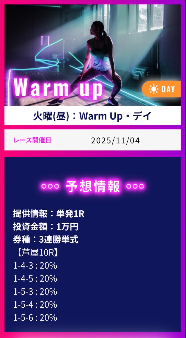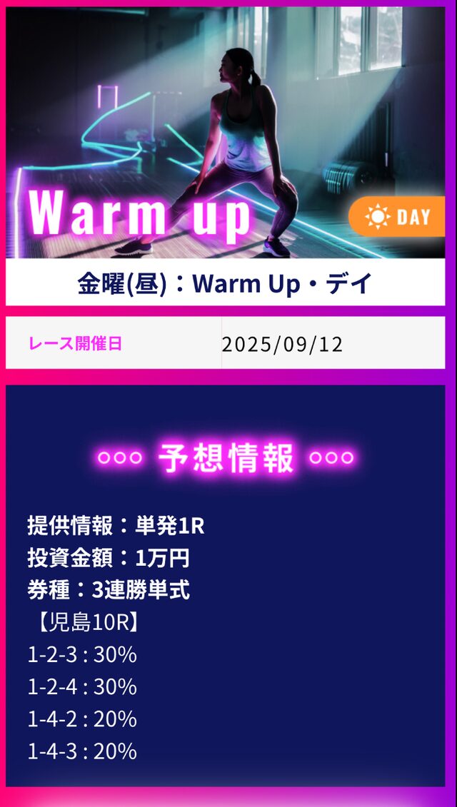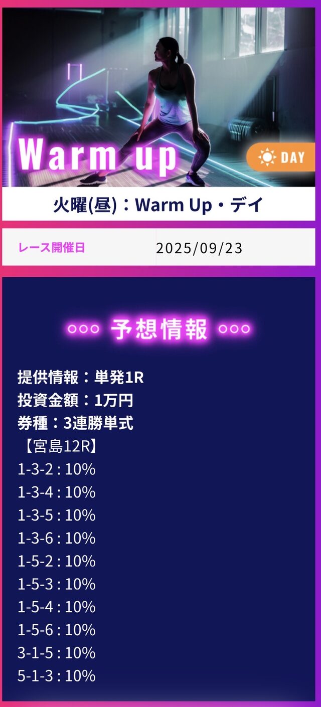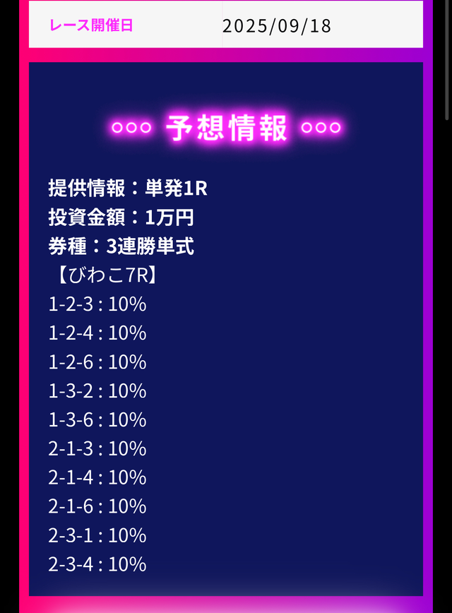 鉄板レースを選んで狙い撃ち! 点数と金額の調整が上手いので、オッズが低くても問題なし! 狙い方が定まっているので、今後ブレる心配もありません! | |