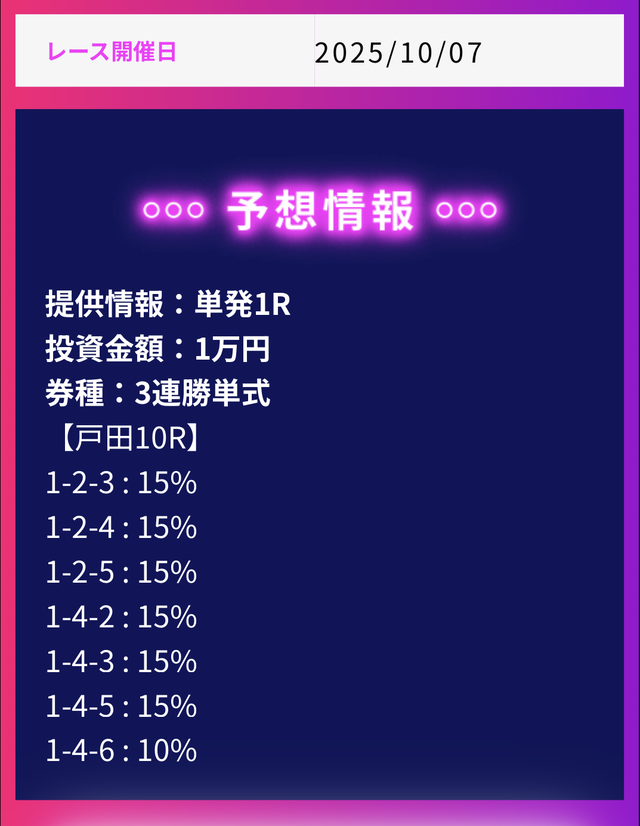 情報料金の40,000円だったら無料予想に4回も参加すれば稼げるくらいのハードル。