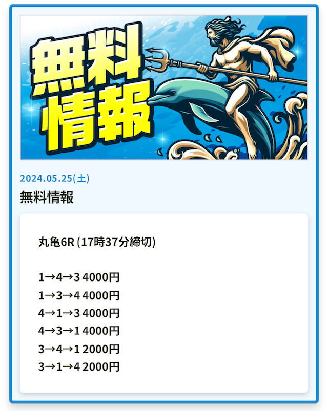 競艇マスターズは、そんなゴ◯みたいなサイトと差別化を図るため、ほぼ全ての無料予想に参加。