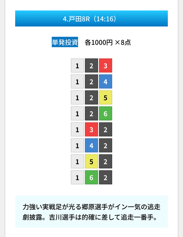 あれだけ展開読めんなら、もっと配当狙っていけそうだけどな。