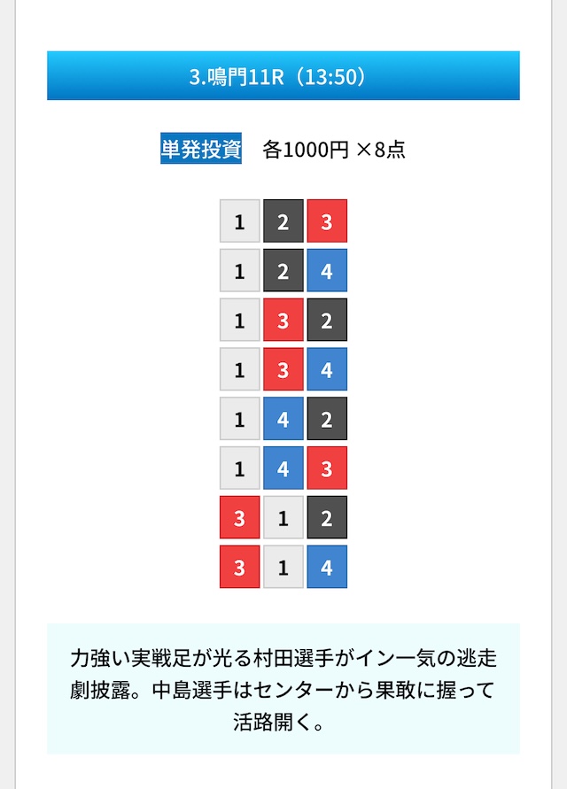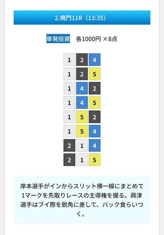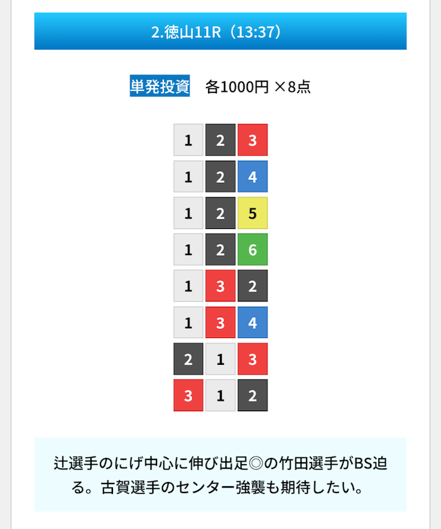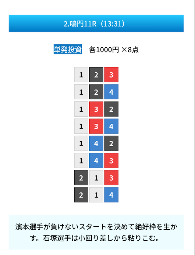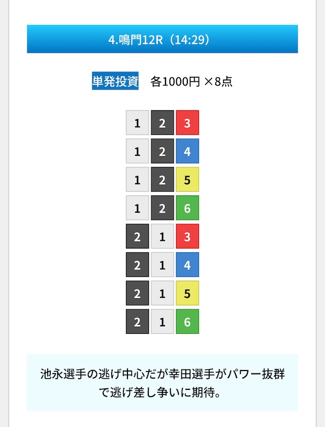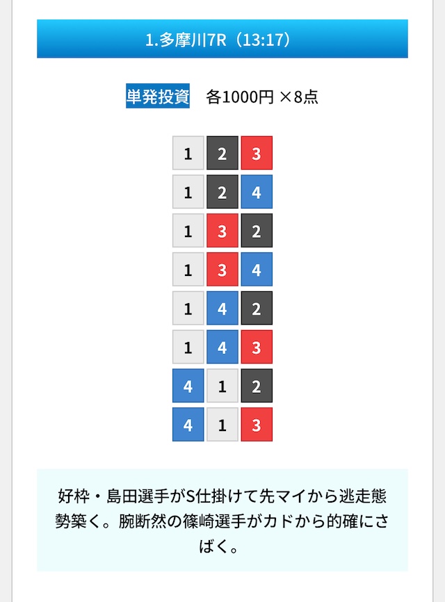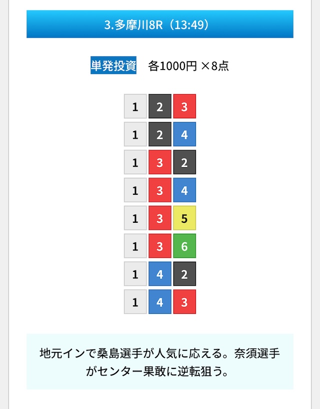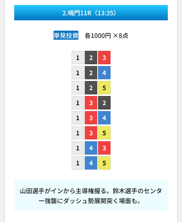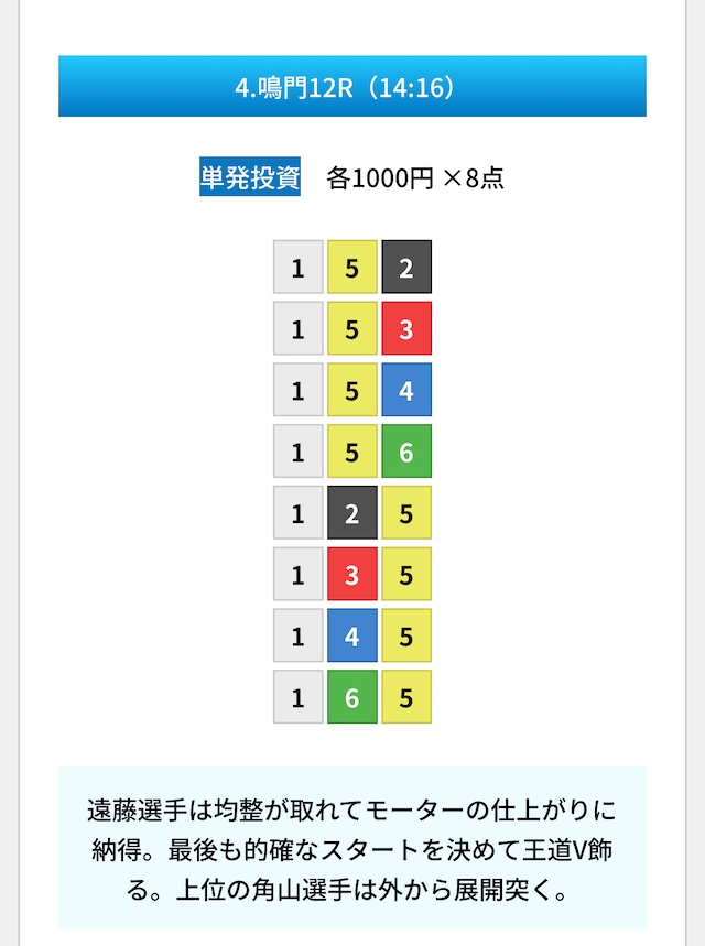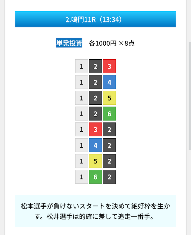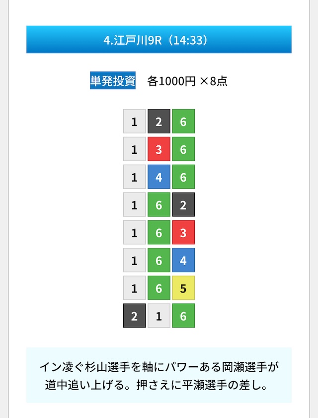 - 匿名1点1点の金額が調整されてて、オッズに対する意識の高さを感じた。 厚く押さえてたとこが来たから利益が残った。トリガミにならないように組んでる予想って少ないからこれは貴重かも。
