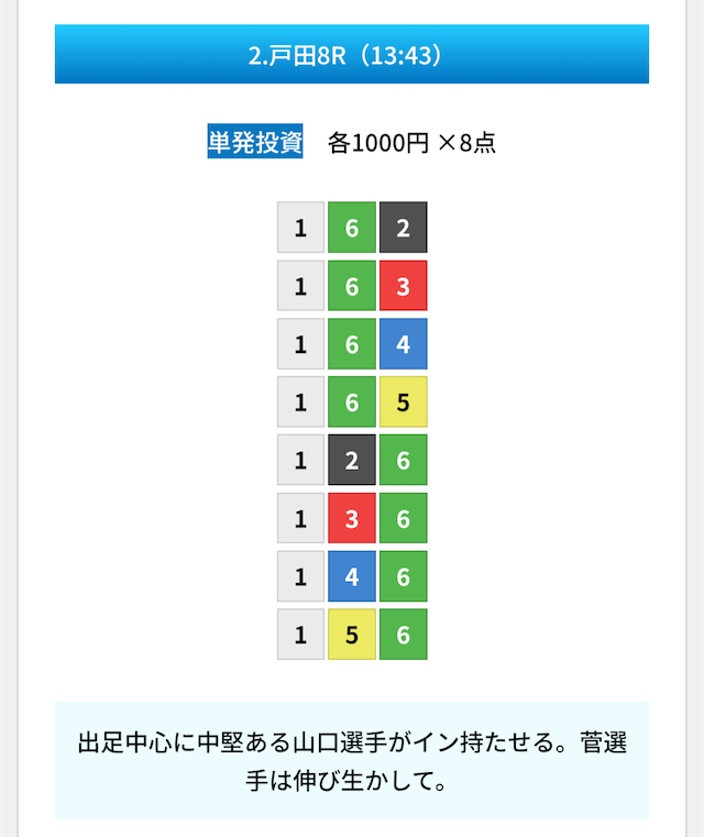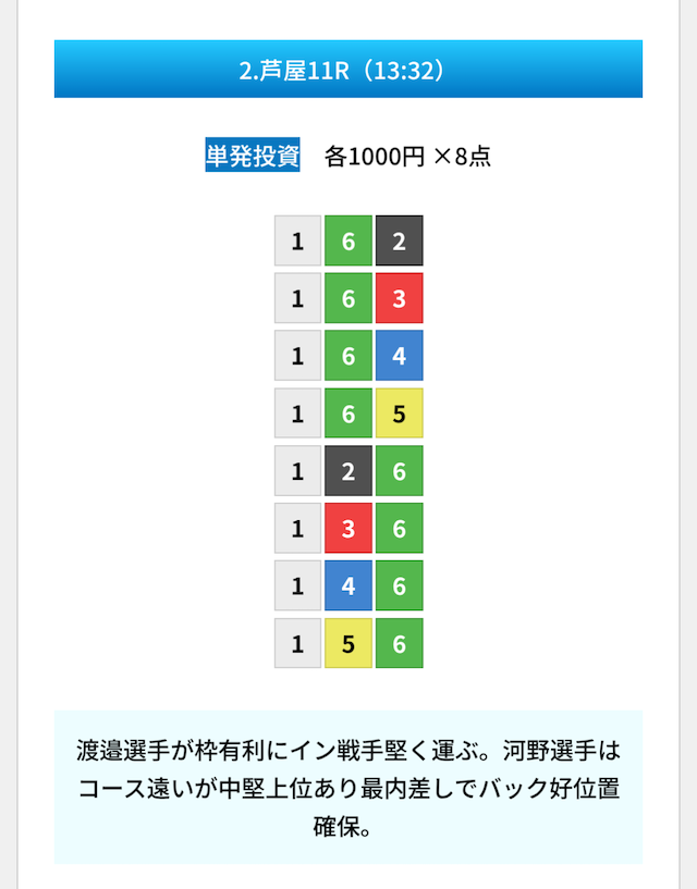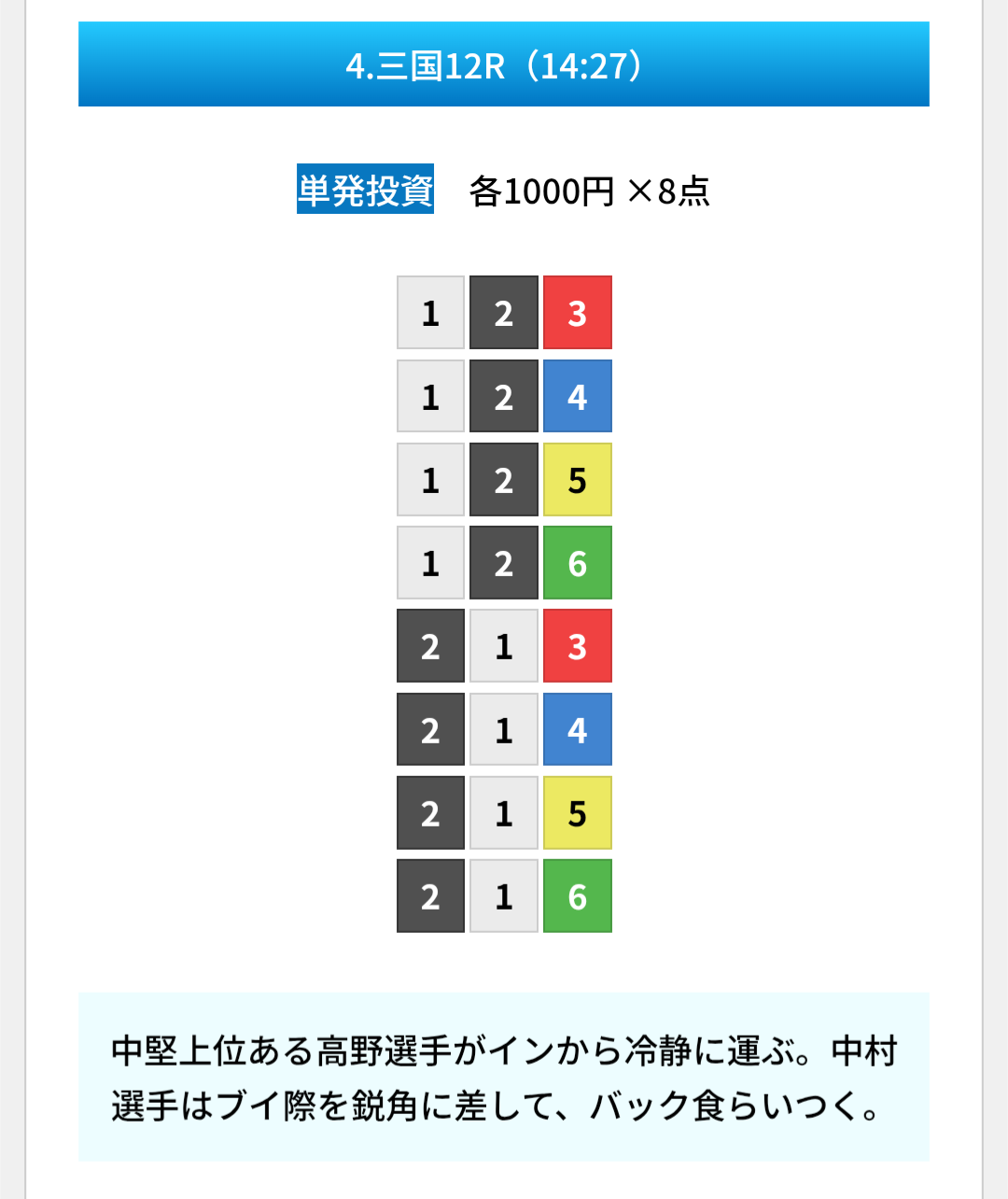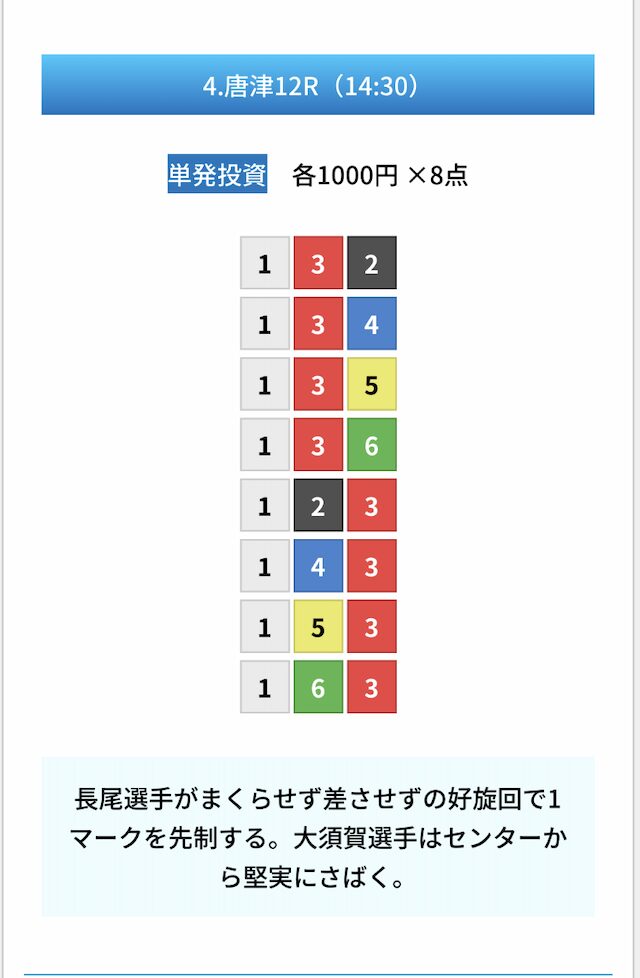 - 匿名6点構成でこれだけ仕上げてくるのはなかなかないと思う。 買い目に無駄がない感じがして、毎回「狙いどころが見えてるな」と思わされる。無理に荒らさず、でも避けるべき穴はちゃんと入ってる。